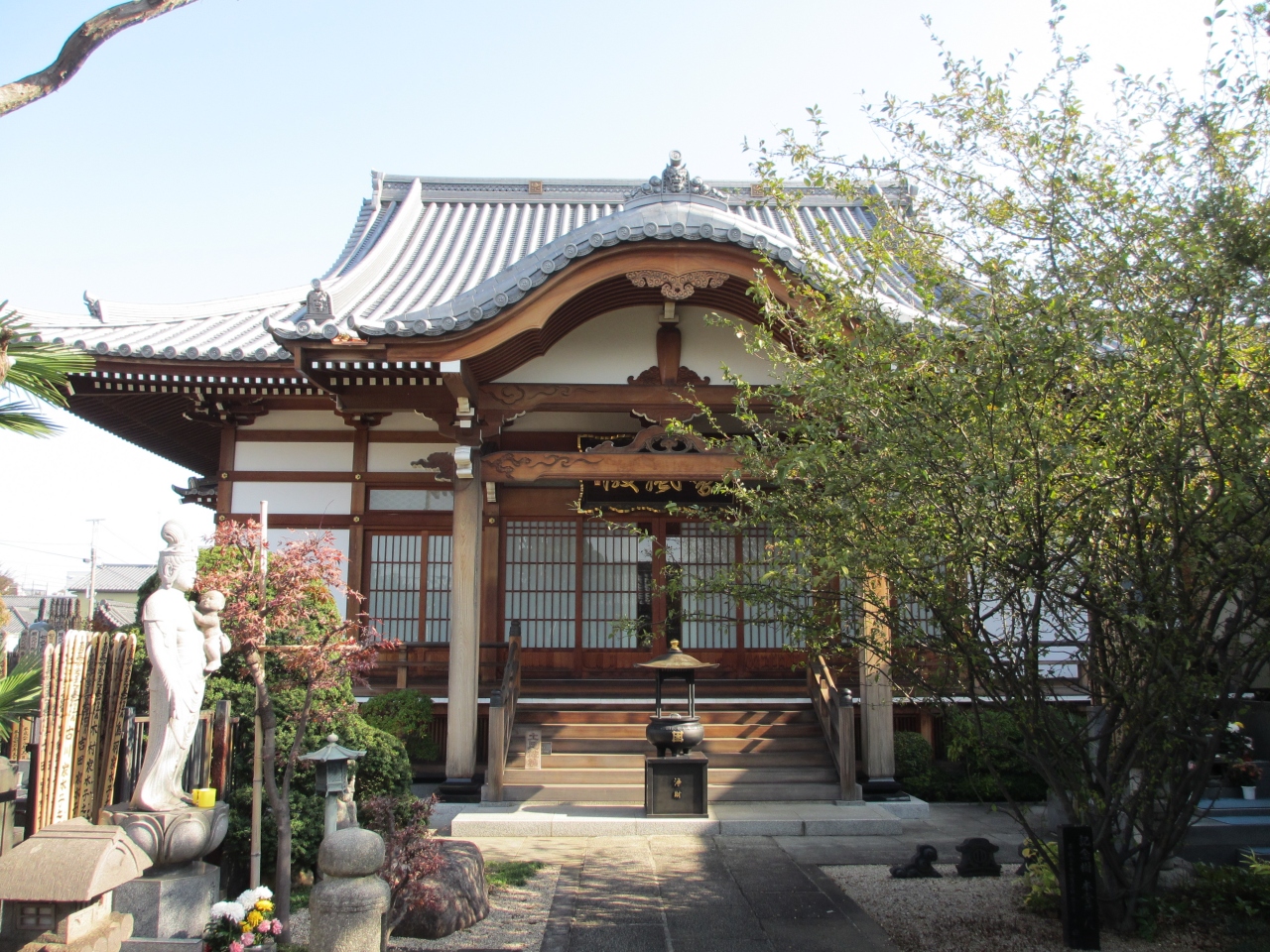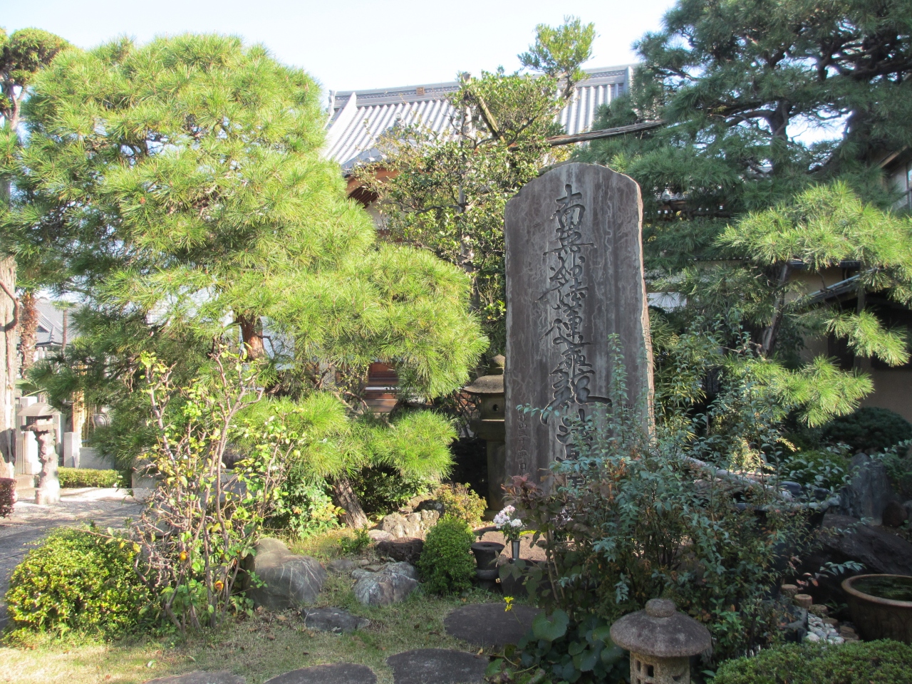 言問通りのそばにある日蓮宗寺院です。1588年創建の歴史ある寺院です。本堂前に松があり狭いですが風情ある庭があります。そこに南無妙法蓮華経が彫られている大きな石が立っています。山門前にも松があり印象深いです。小さな子供連れの外国人家族が来ていて、本堂前の家族を撮っていました。観光客が訪れるような寺ではなかったので、谷中を散歩した時に寄りたくなったのでしょう。谷中寺院巡りをしている自分と似ているなと思いました。