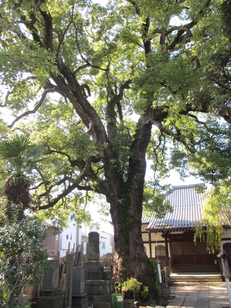 言問通りそばにある日蓮宗寺院です。境内には6人が手をつなぐほどの幹周りのくすのきがあります。本堂前には大きな枝垂れ桜もあります。谷中寺院巡りで手入れされた風情ある庭を見てきましたが、このように立派な大木は初めてで驚きました。写真を撮っていると、やはりくすのきを撮りに外国人が訪れていました。大雄寺隣の谷中岡埜栄泉と向かいの愛玉子と共に訪れてはいかがでしょうか。