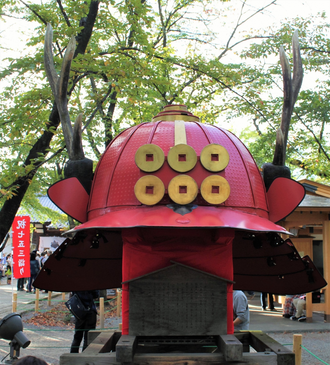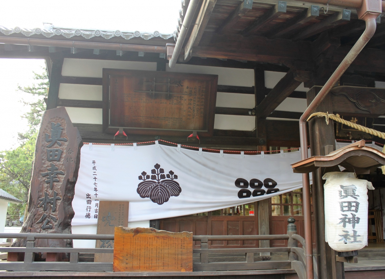 境内で一際目に付くのは、幸村公が身に着けたといわれる巨大な鹿角脇立朱塗兜。