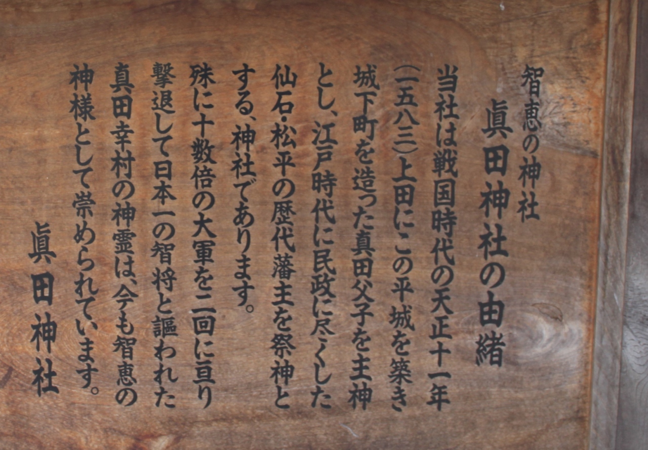 真田父子を主神とし、仙石氏、松平氏という歴代の上田城主を御祭神としています。