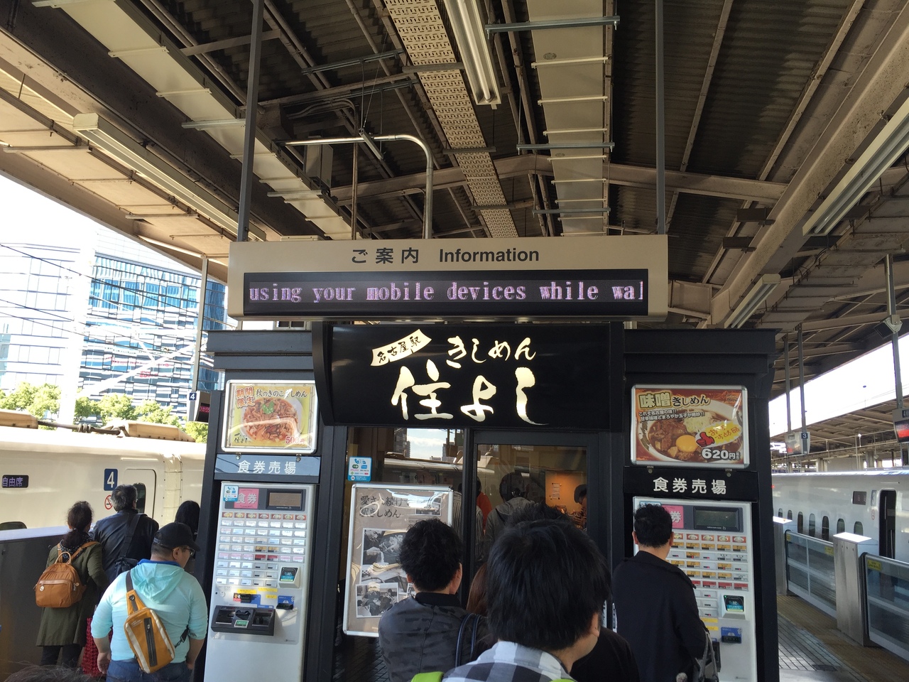 名古屋名物のきしめんを安く早く食べられる名店。新幹線の京都寄り、5号車の前くらいです。お昼の時間帯だと行列にぎょっとなりますかが、立ち食いなのですぐに回ってきます。具を足すとそこまで安くはないですが、気軽さはナンバーワンです。