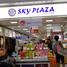 大阪空港の2階、JAL側とANA側の搭乗口のちょうど中間の通路沿いにあるお土産店です。