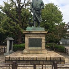 上野公園の象徴的な像で大きいので立ち寄って見ている人も多く、ボランティアガイドの説明を聞いている人もいました。刀を差して正面を向いて犬を連れて歩いている感じは威厳がありますが、後ろ、斜め、横の姿もカッコいです。