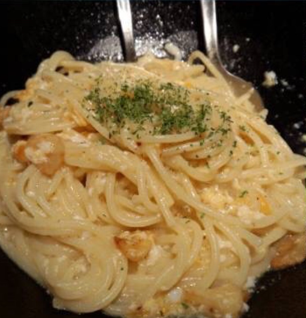 福岡の友人の紹介でいきました。福岡では超有名店でスポーツ選手、芸能人数多くのファンがいます。ペペロンチーノとカルボナーラがいっしょになったぺぺたまはもう絶品です。卵のまろやかさに鷹の爪のスパイシーさ、にんにくの薫りが食欲をそそります。