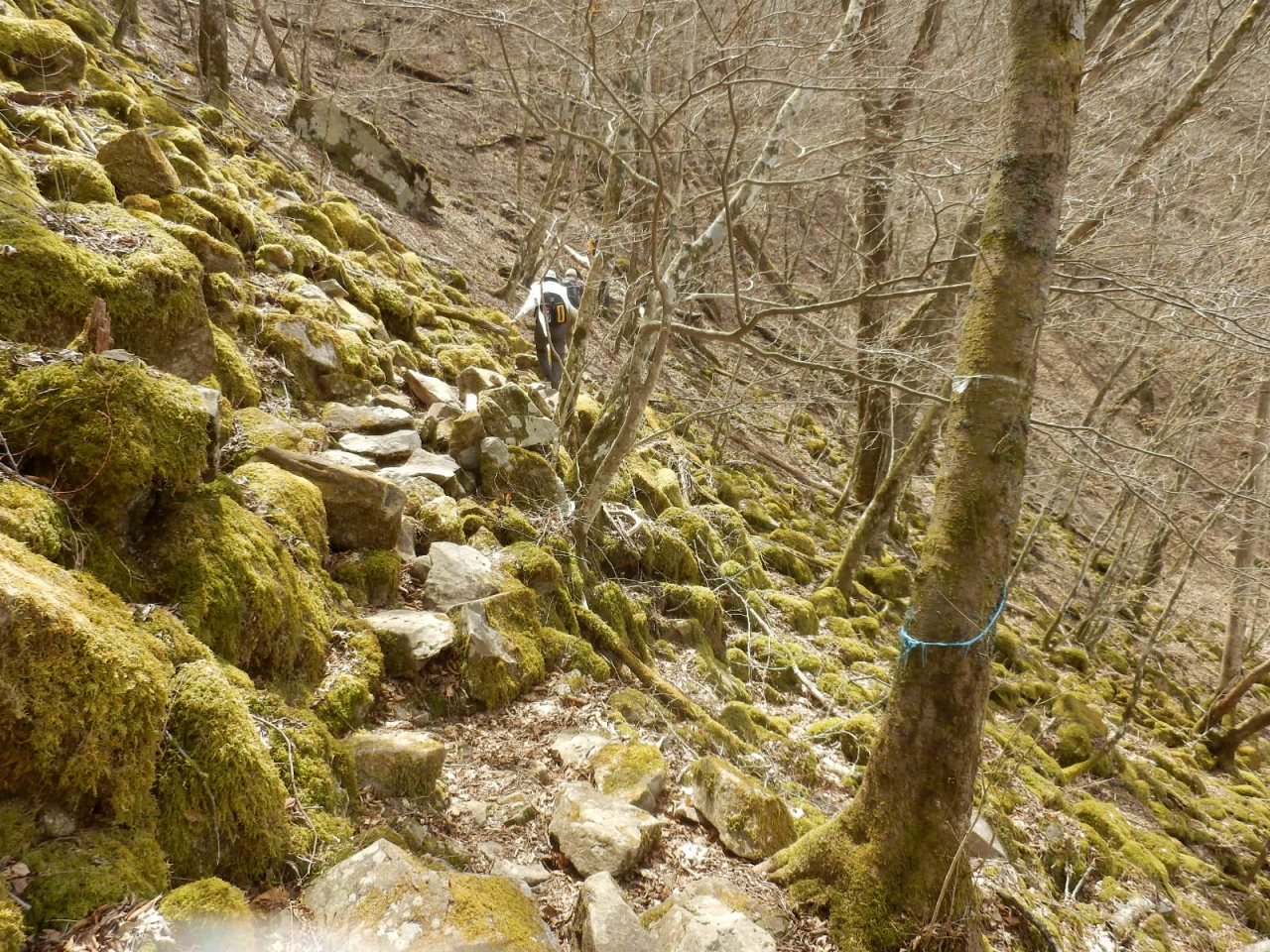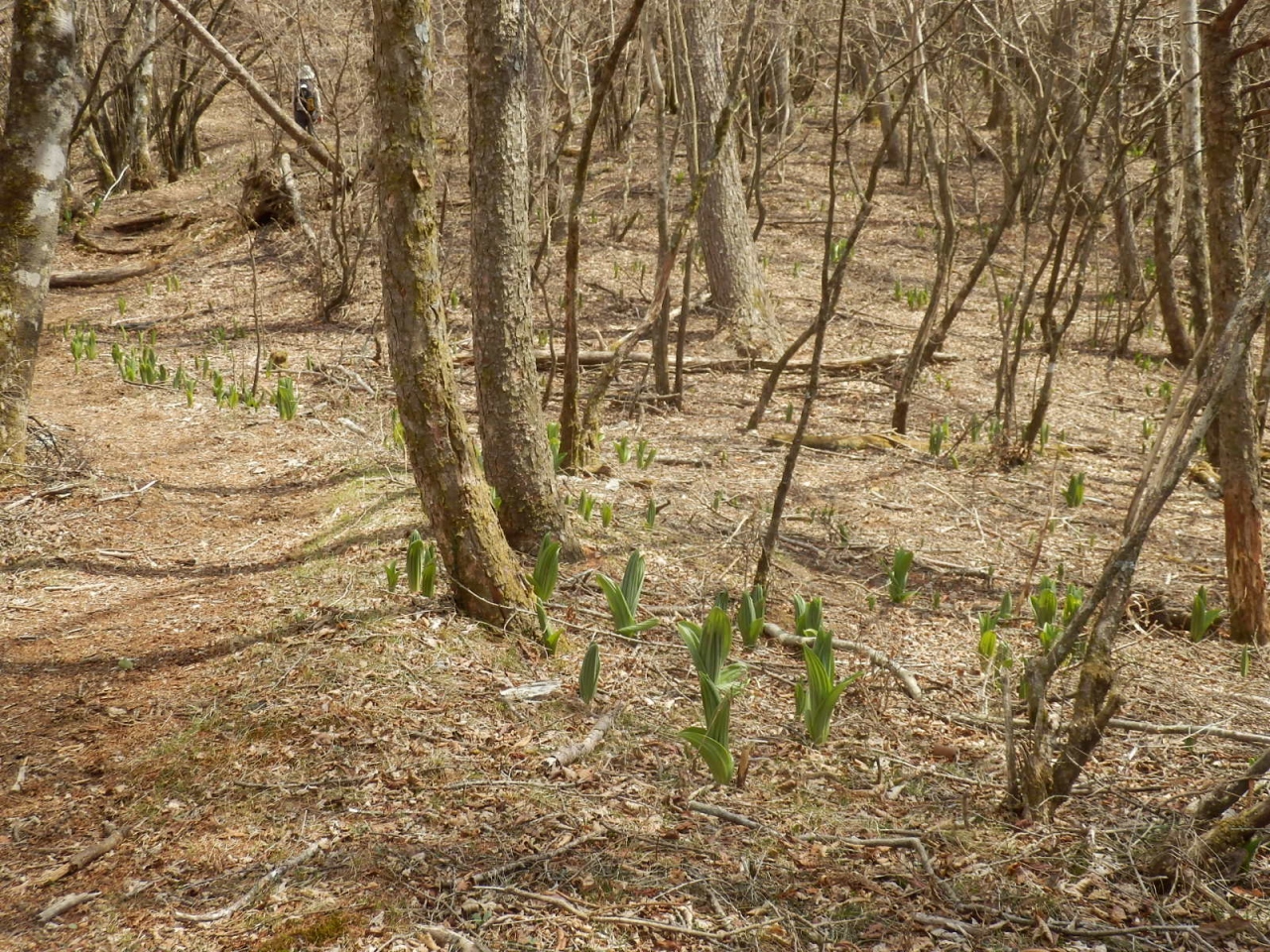 山の仲間18人と真富士山に登りました。第三登山口より登り始めて30分後、登山道はガレていて、苔むした石道を登る。登山始めて2時間ほどに第一真富士山に到着。遠くはガスっていて富士山もかすかに見えるだけでした。昼食後早々に出発し、第二真富士山に向いましたが、第二真富士山をあきらめ、途中より左に下り登山口にもどりました。途中で会った花もハナネコノメソウ、ヤマネコノメソウ等数種類で、4月という花の季節にもかかわらず質量とも少なかった。何の売りも無い、面白みも無い山でした。しいてあげれば、冬に登った時の冬枯れと富士山ということでしょうか。