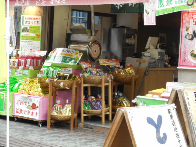 甘酒横丁の通りを明治座方向へ向かう左手に、店を構える老舗店で、近くに行くと、ほうじ茶の焙煎の香りが漂います。甘味処もあり、口コミで抹茶パフェが人気で美味しいとの評判です。道行人にお茶の振る舞いもして、寒くなって温まりました。