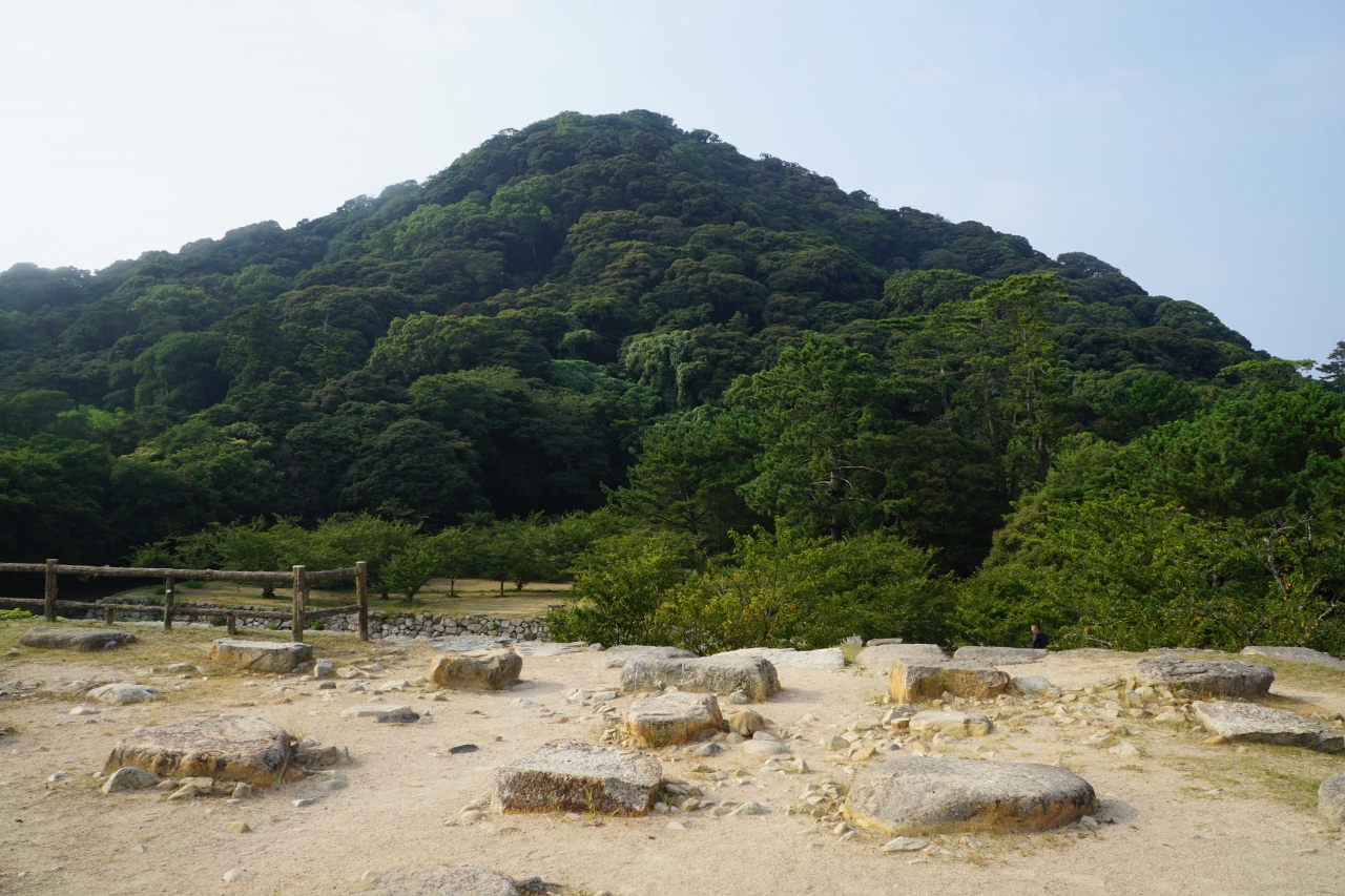 指月山は、萩城の背後にそびえる山。萩城跡から見ると特にどうということはないのですが、城下を少し離れると三角の整った形が特徴的で、これを目印にするとすぐにお城のある辺りが分かる。萩市のランドマークになっていると思います。