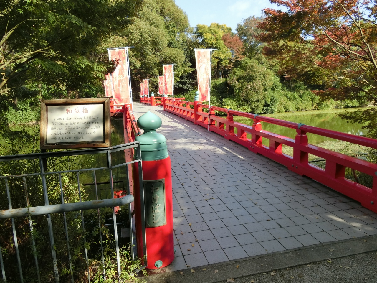 天王寺公園を散策中に訪れました。河底池に架かる橋でこの橋を渡ると茶臼山です。赤の柵が印象的で、歴史も相当に古いそうです。橋の袂には説明文が明記させた案内版もありました。橋の途中まで行くと、通天閣、あべのハルカスをそれぞれ遠くに見ることが出来、記念写真のスポットとしても良さそうでした。