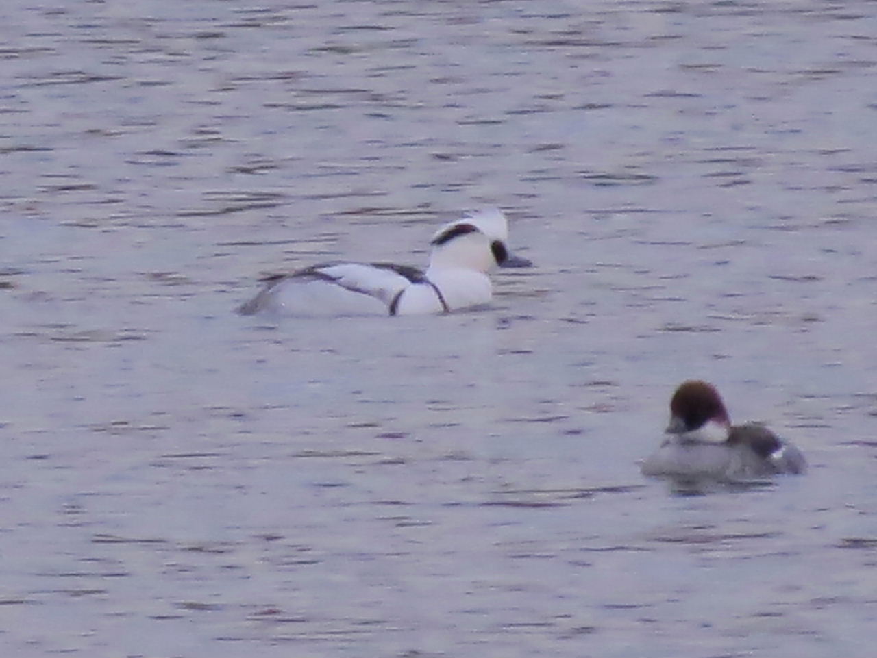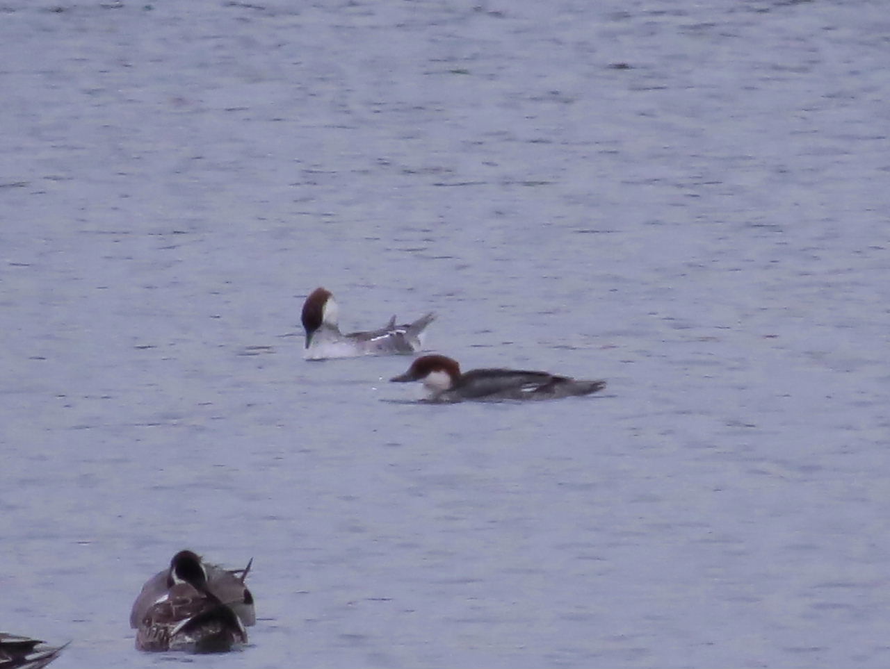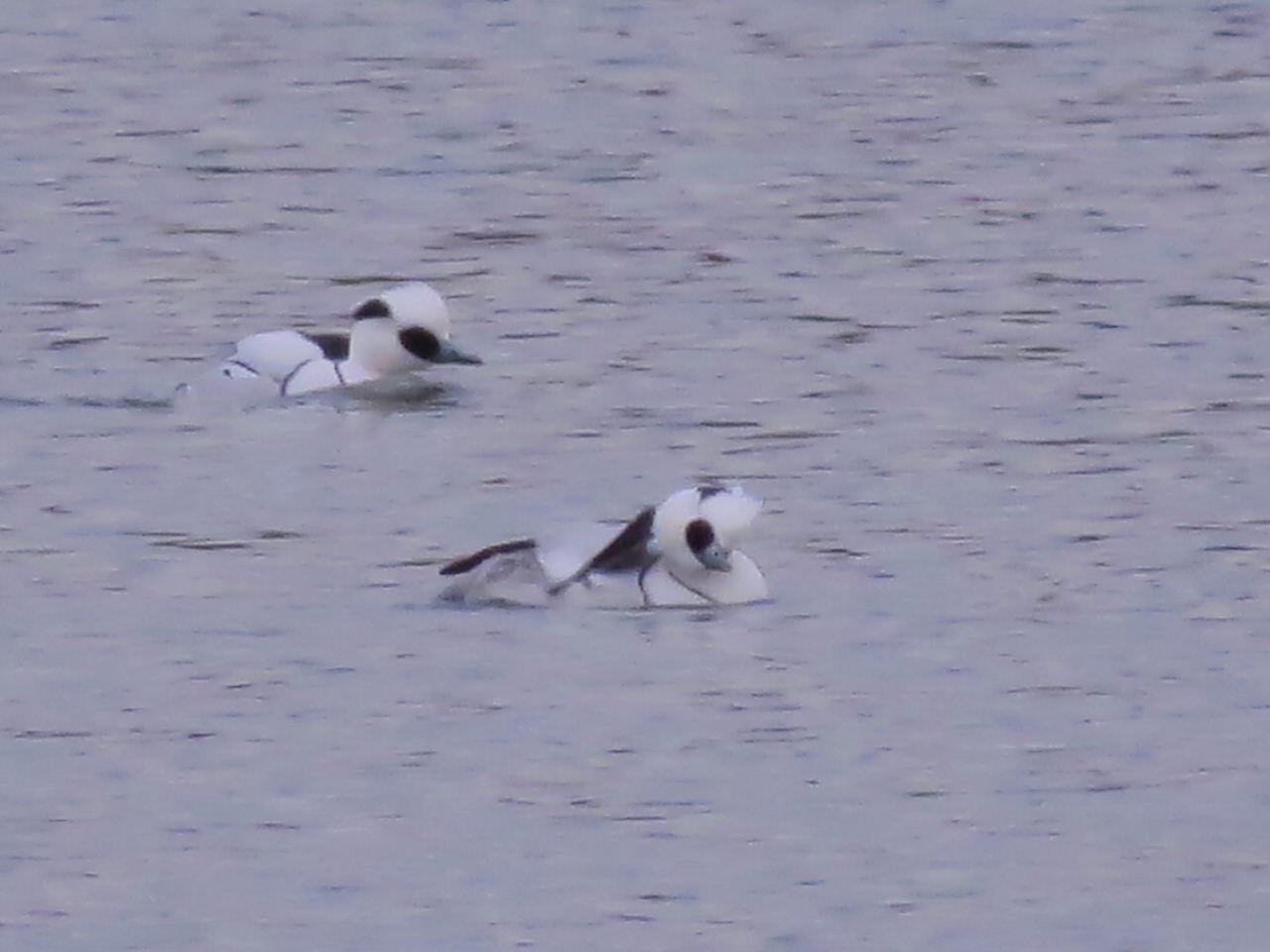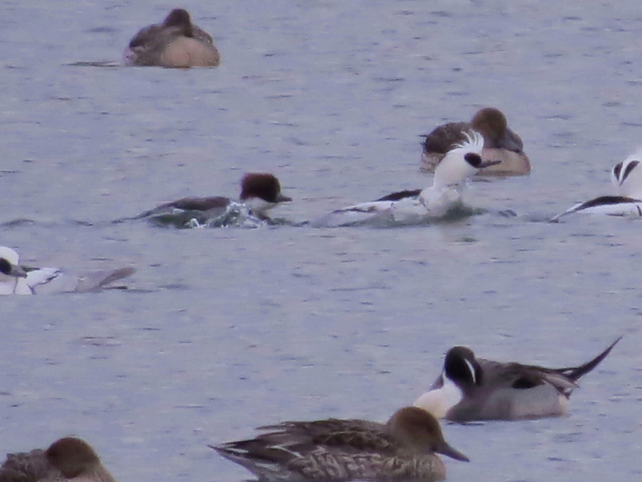 今回もオナガガモやマガモなどに交じって、10羽以上のミコアイサが見られました。