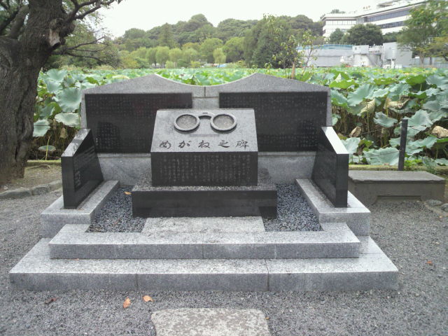 上野公園の不忍池の岸辺に、めがねの碑があります。不忍池への橋のすぐ傍です。