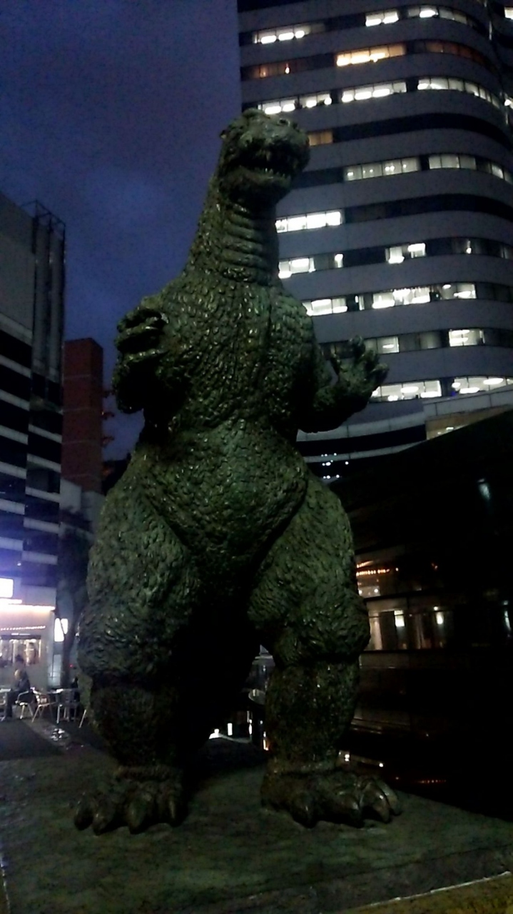 日比谷シャンテの脇の広場にあるゴジラ像です。ゴジラ生誕40週年を記念して作 られたゴジラ像のようですが、かなり精巧にできているため、近くて見ると迫力がありますが、小さな銅像なのであまり目立たないのが残念です。もう少し大きいほうがゴジラらしくて良いかなというのが感想です。
