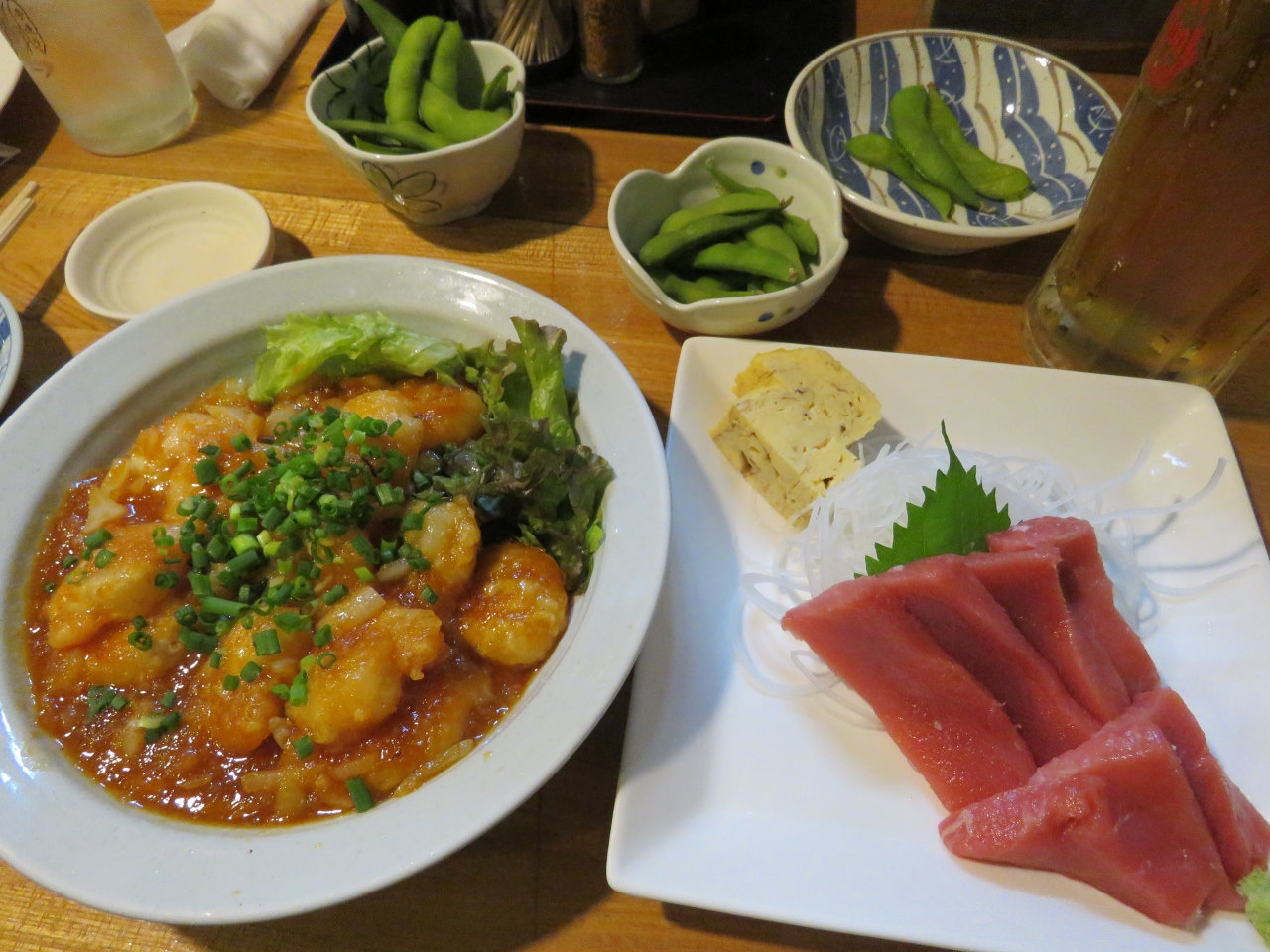 まぐろ専門店という事で、そちらも注文しましたが~どの料理もおいしく、特に最初に出てきた島豆腐と海ぶどうのサラダが印象に残りました。