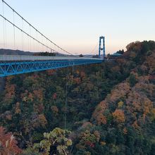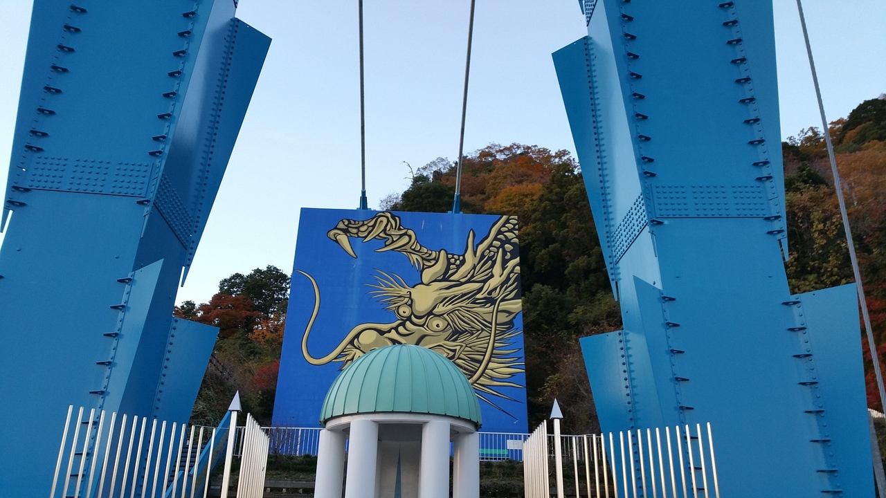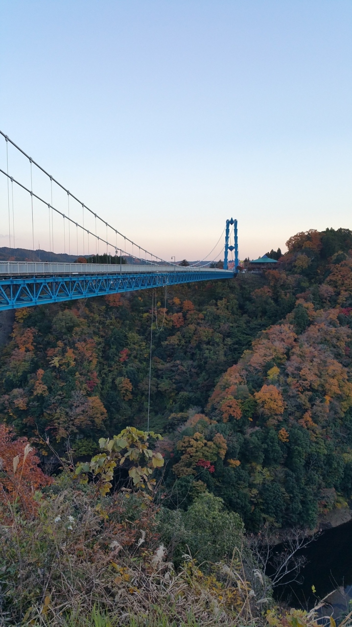 日本一高い橋?竜神大吊橋に友人と行ってきました。16時頃に到着したので一番近い駐車場に停められ入場料310円を払い高所恐怖症なので出来れば渡りたくないのですが揺れそうもないので渡ってみましたがやはり揺れない訳はなくちょっと途中で止まると揺れを感じとても恐くゾクゾクしました。バンジージャンプをしてる方もいましたが信じられないです。