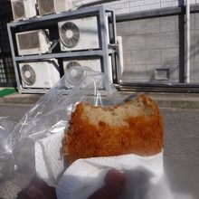 私の前に並んだ地元のおばさまは、十数個購入してました。私は1個、90円。小ぶりなコロッケは、揚げたてホクホクで普通に美味しかったです。