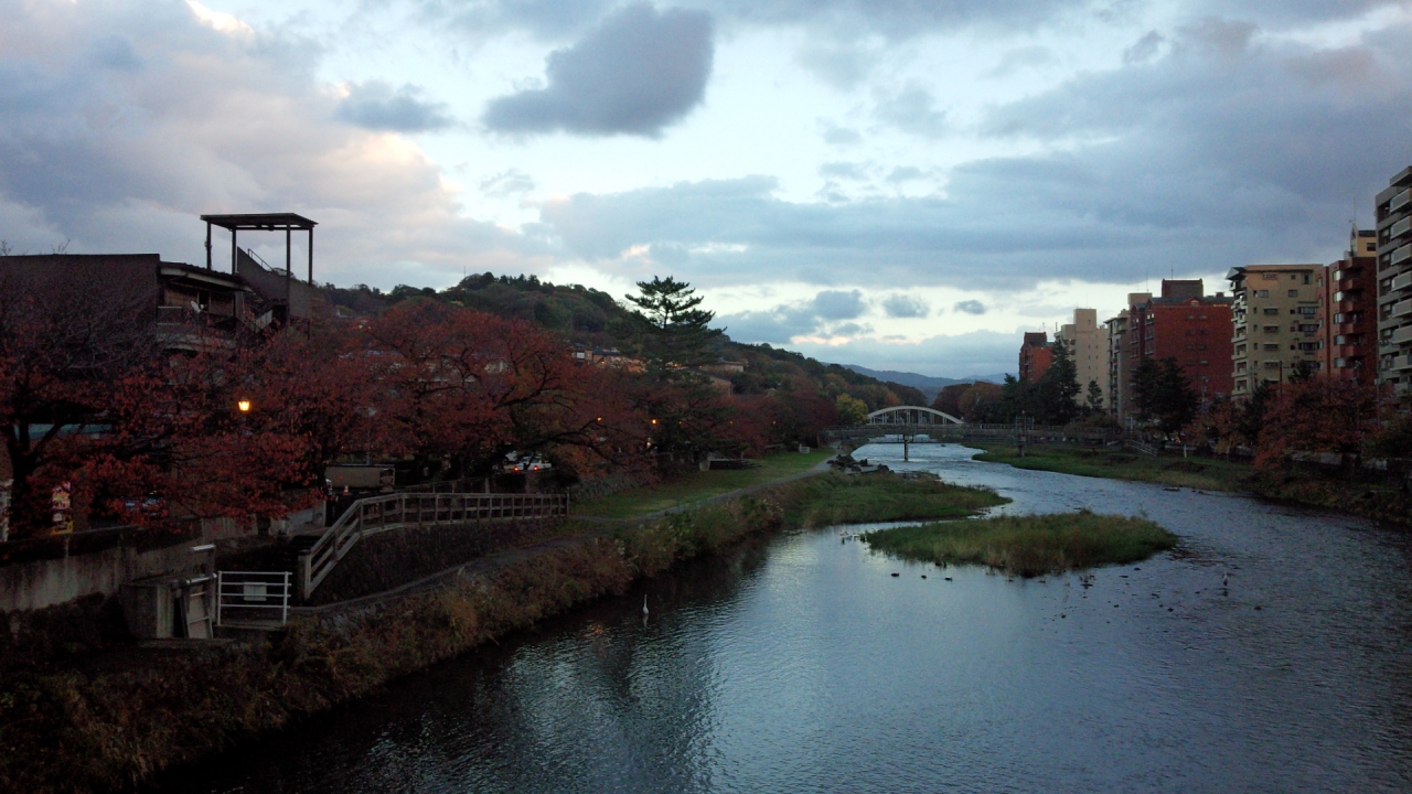 私たちは、この橋の手前の車も通行する大きな橋からひがし茶屋街に移動したのですが、バスを利用してきた人はみんなこちらの大きな橋から行くので、梅ノ橋は誰も通っていませんでした。この梅ノ橋と川と茶屋の明かりの風景が夕方から夜にかけて、とてもきれいでした。