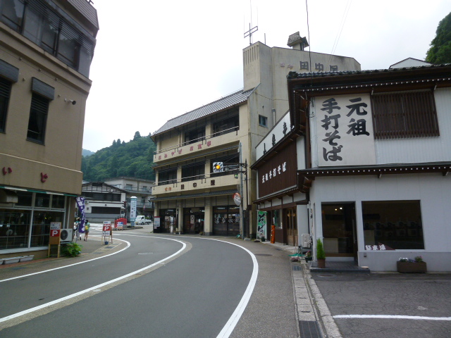 その間の沿道には土産屋さんや食堂が並んでいます。名物の手打ちそばが多く見られますね、また竹や木材の加工品も多く見られました。