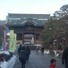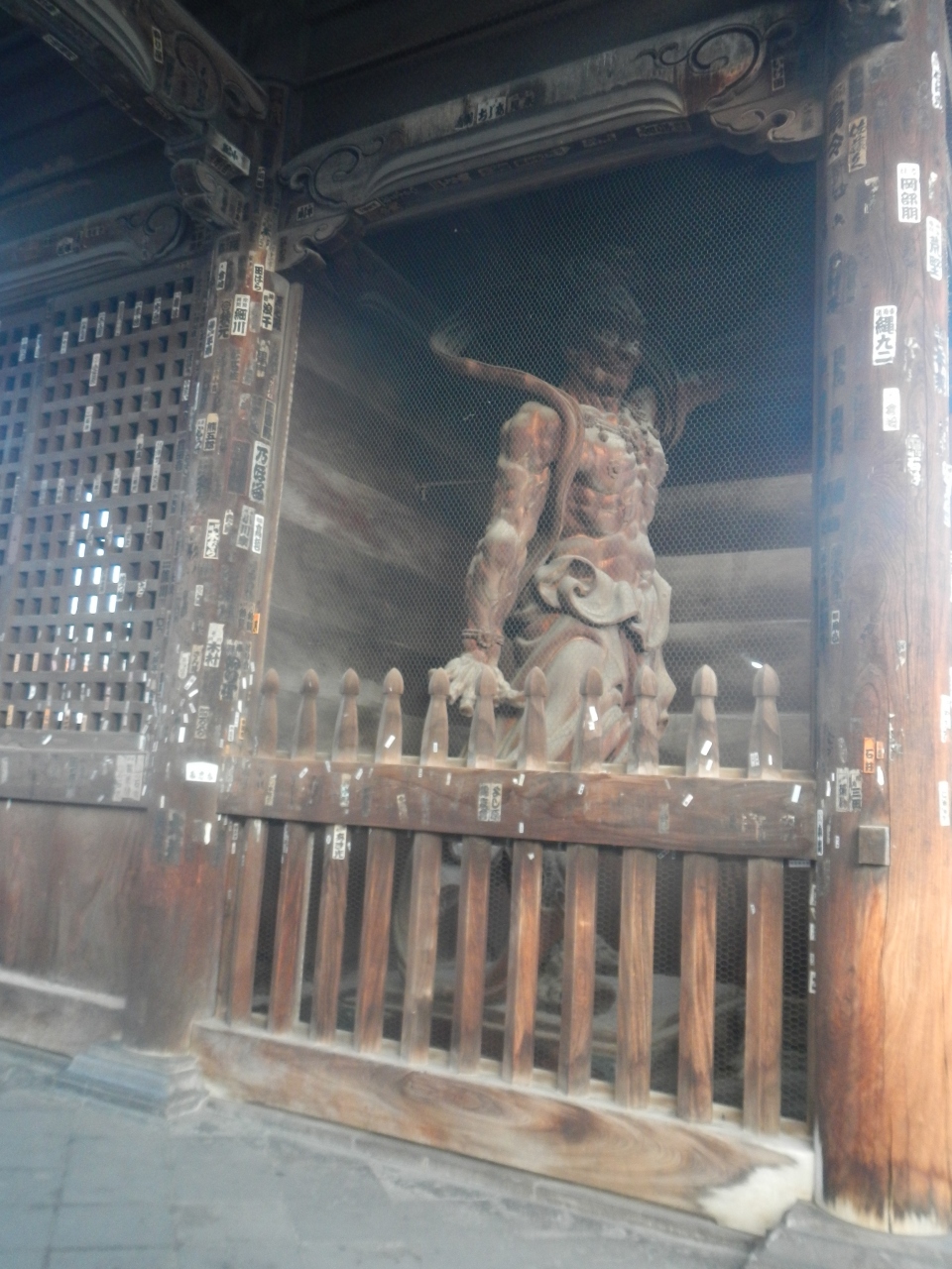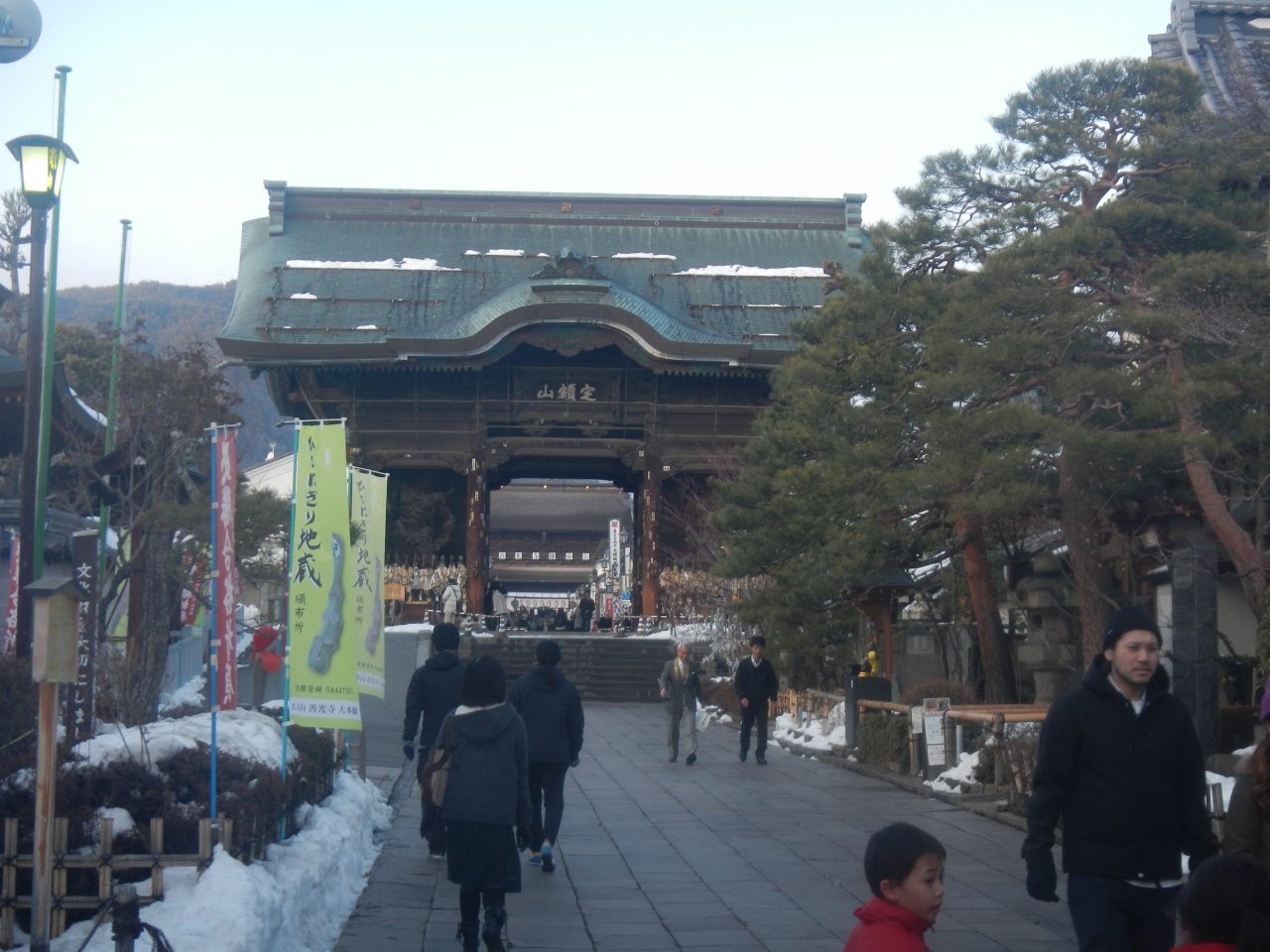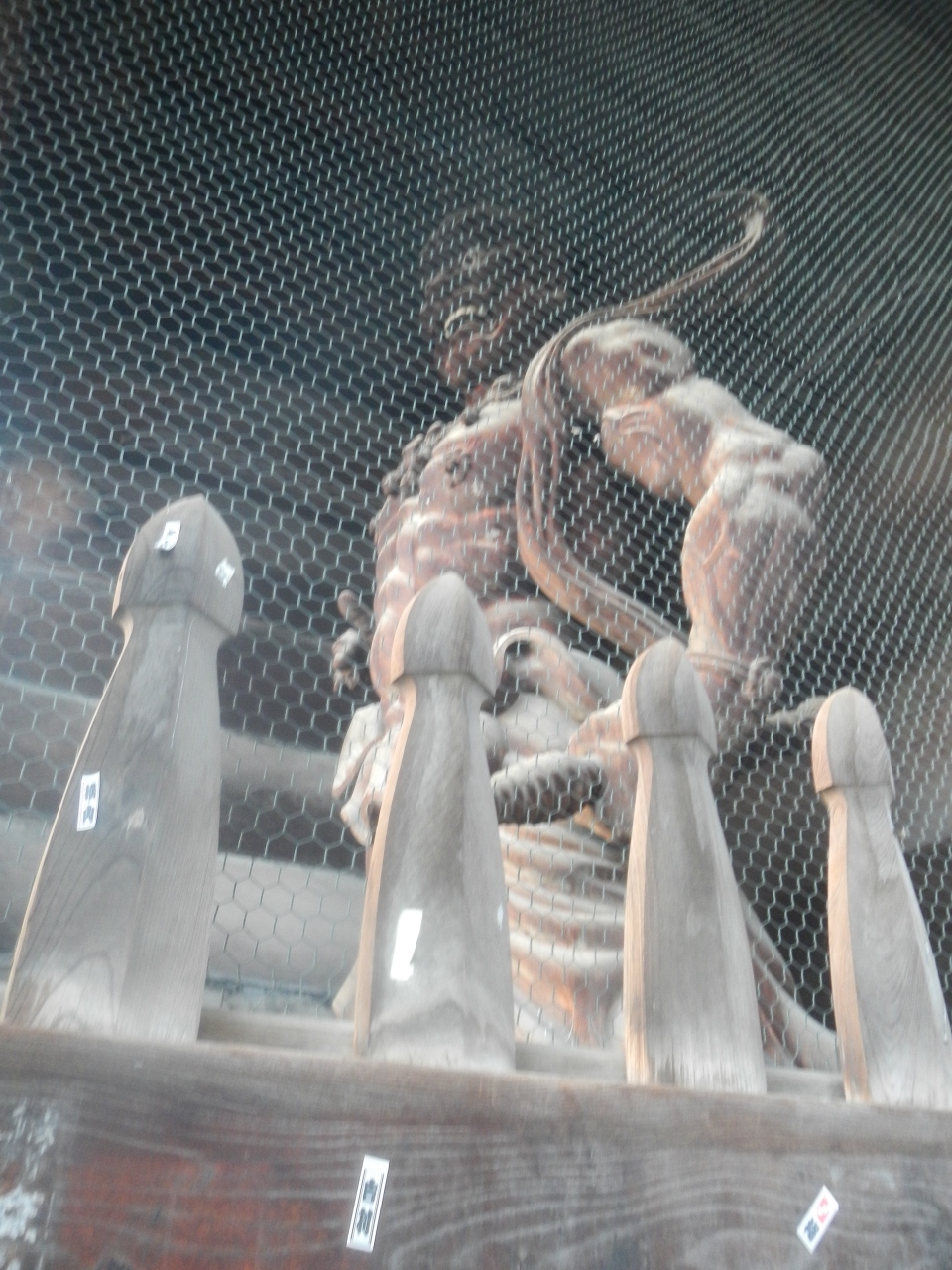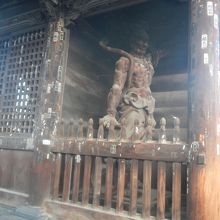 善光寺の入口に建っている門。普通は山門に金剛力士像があるが、善光寺には山門とは別にこの仁王門がある。門の左右には仁王像(金剛力士像)が立っている。右側に吽形、左側に阿形が立っている。阿形は白い歯が見えるのですぐ区別がついた。両方とも東大寺の南大門の金剛力士像を彷彿させる迫力があった。