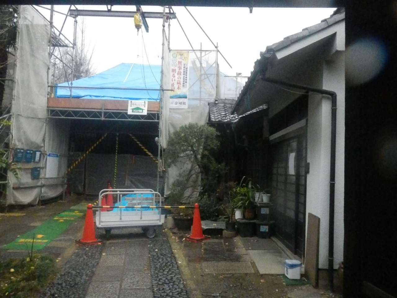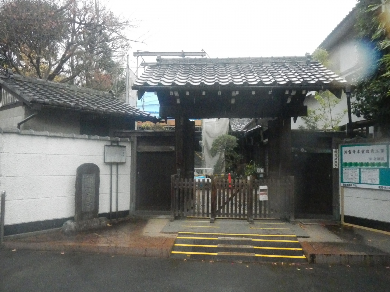 境内と呼べるほどの敷地がないくらいの小さい。本堂の改修工事中だったので境内の中に入ることはできずに山門の前から見ることしかできなかった。