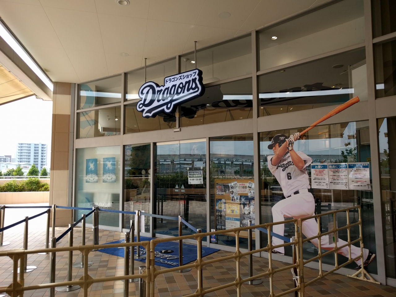 「ドラゴンズショップ」がイオンナゴヤドーム前ショッピングセンター内にあり、近くにナゴヤドームがあった。前にソフトバンクホークスのオフィシャルショップ行っており、規模の違いに驚いた。女性ファンを増やせばグッズが増え盛り上がるのだが。中日ドラゴンズ、ドアラグッズが豊富だった。
