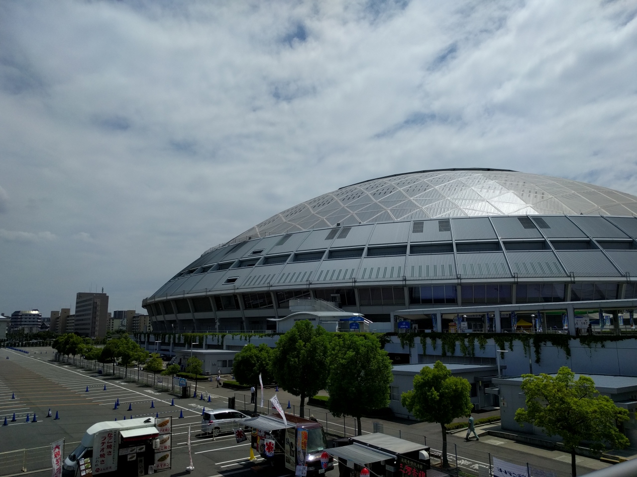 「ナゴヤドーム」は地下鉄ナゴヤドーム前矢田駅から屋根付き高架橋で繋がっており、雨に濡れず行けて便利だ。近くじゃわからんが、未確認飛行物体のような外観でかっこよかった。中日ドラゴンズの試合がありファンで混んでいた。