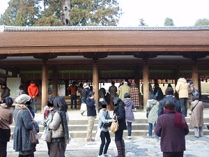 西国三十三ケ所霊場の御朱印を頂く目的で興福寺に行き、足を延ばして春日大社に行きました。高等学校の修学旅行以来五十数年振りに訪ずれました。長い参道は大樹に囲まれ、神聖な雰囲気を醸し出しています。朱色の中門、御廊、侍門、回廊が色鮮やかできれいです。奉納された釣灯篭に火が灯された光景は幻想的で美しいでしょうね。一度見てみたいものです。