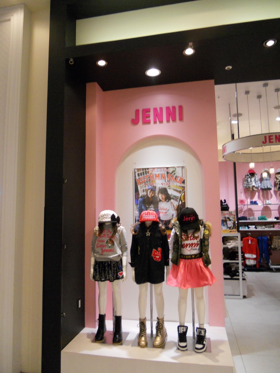 「JENNI(ジェニィ)」は、2011年4月にオープンした巨大商業施設「あべのキューズモル」の3階、ほぼ中央のエスカレーターの手前にある、キッズウェアのショップです。