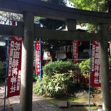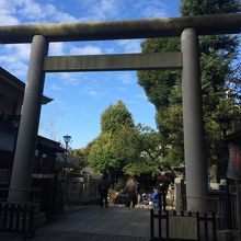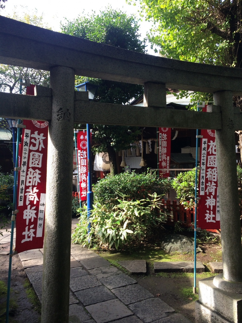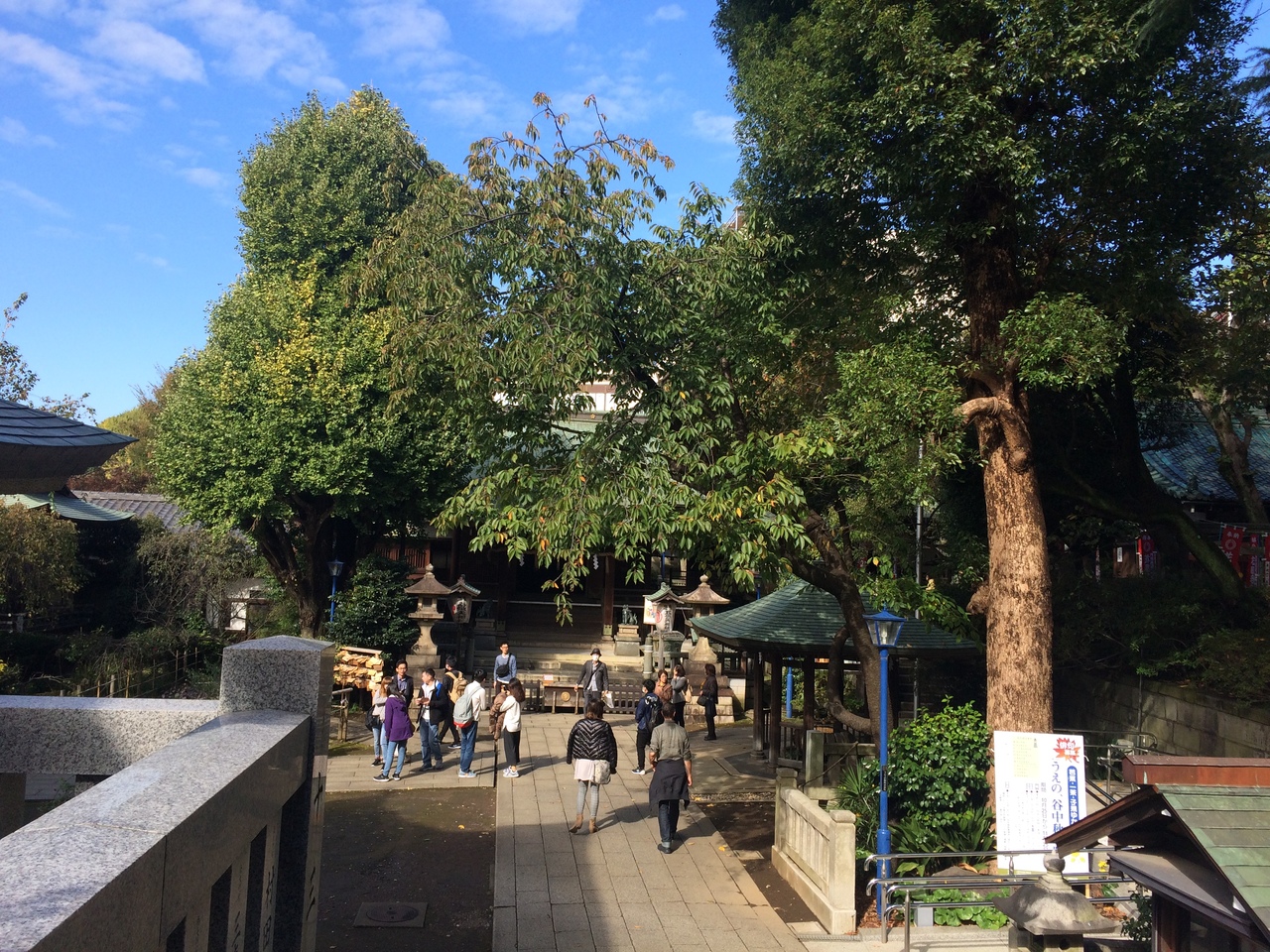 参道は白い鳥居を潜ると赤い鳥居が何十と続いていて鮮やかです。参道は狭く人がすれ違えるぐらいで本殿に繋がり緩やかな階段を降りることとなります。本殿付近も歴史を感じる境内ですが、何十も続く赤い鳥居は圧巻ですが、京都にある神社は有名ですが、都区内にあるのは知りませんでした。