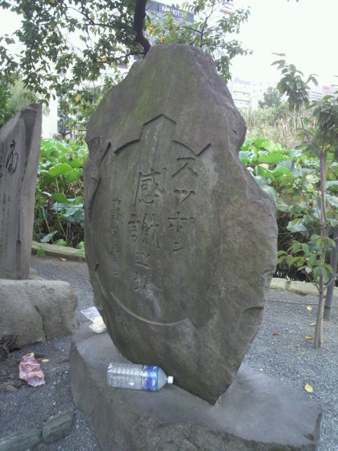 スッポン感謝の塔が、上野公園不忍池の弁天堂の横に建てられています。