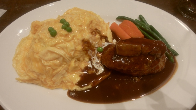 フォアグラののったハンバーグはジューシーでした。ちょっとデミグラスがもう少しかかっているといいなとおもった。オニオングラタンスープがあつあつでチーズがとろってしていておいしかった。