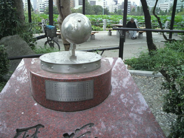 台座の上に、日時計が置かれ、その上に地球が取り付けられています。