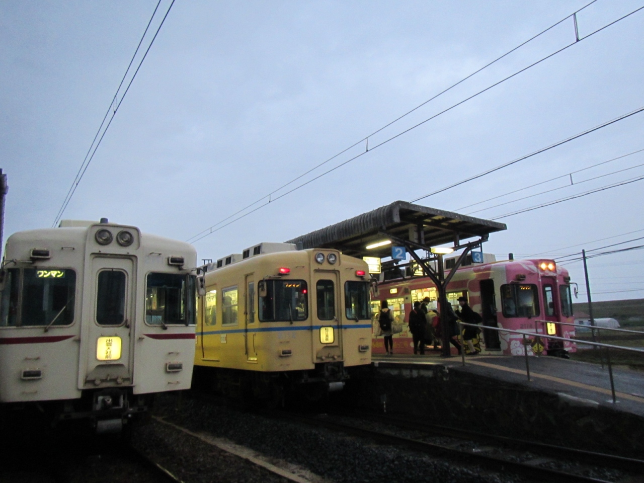 乗り換える場合は、踏切が出雲市駅側(大社線では出雲大社駅側)にあるので、駅到着が間近になったら、車内でその方向に予め移動しておくとよいです。