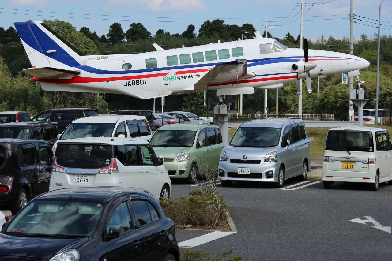 駐車場に飛行機があり、真上を成田空港へ向かう飛行機が飛び交う場所