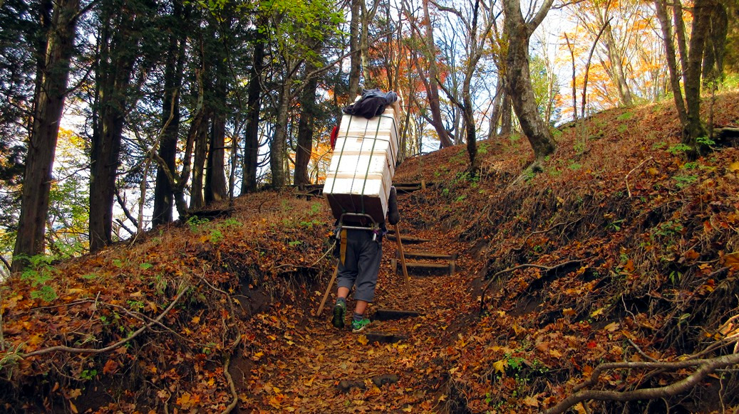 帰りに歩荷の方とすれ違いましたが、うどんはもちろん、水などの物資を数十キロ背負って歩く姿を見ると、とてもありがたいものをいただいた気持ちになります。