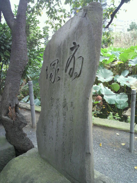 上野公園不忍池の弁天堂の少し手前の南側に、扇塚と言う石碑があります。