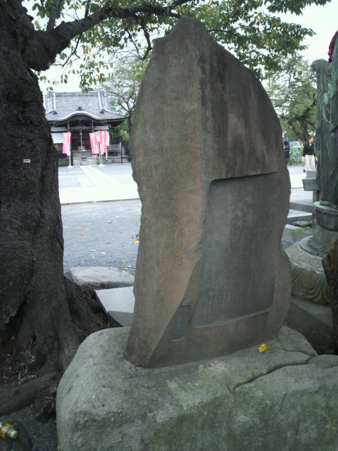 石碑の形は、扇には見えませんが、日本舞踊の名手と言われた初代花柳家の花柳寿美の舞扇を納めた塚と伝えられています。