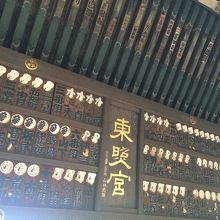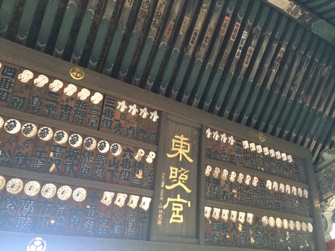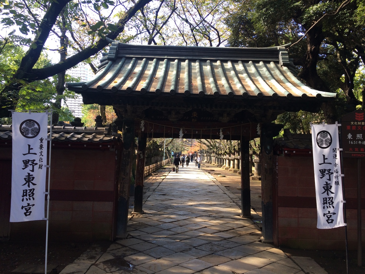 大石鳥居を潜り、最初の門で日本庭園のような感じの門でした。門をくぐると表参道となり左右には灯籠が並んでいます。門を入って反対側から見ると東照宮と書かれ肌がづらりと並んでいます。門の表と裏は違った雰囲気でした。