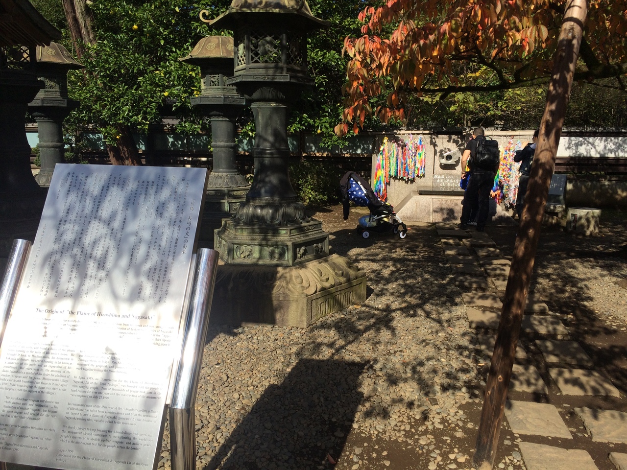 上野東照宮内にあります表参道を歩くと右側にあります。説明看板があり日本語の他に英語で書かれてもいるので外国人が熱心に読んでいました。千羽鶴がたくさん置いてあり平和を願う気持ちが感じられます。表参道沿いから少し奥にあり立ち寄る人が少なく感じられたのが残念でした。