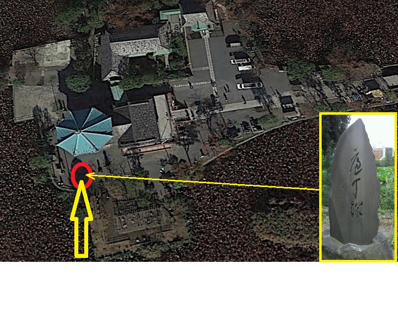 東側横には、背の低い四角柱の説明の石碑が並び置かれています。