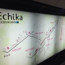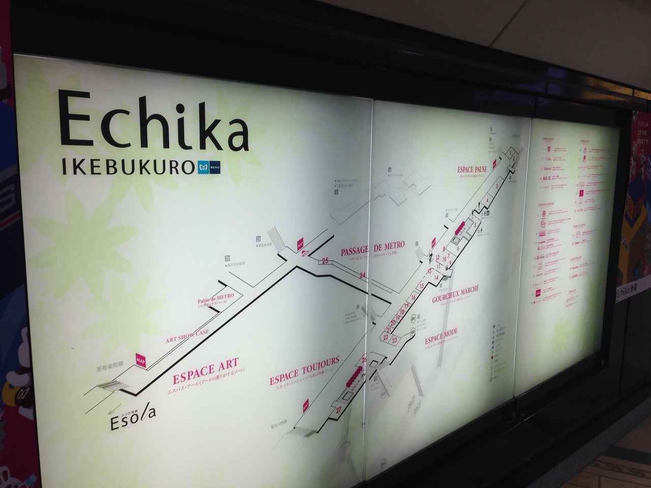 池袋駅西側 地上にエソラで地下にエチカ。エチカは地下鉄副都心線や立教大学方面へ繋がっているので 人通りも多い。