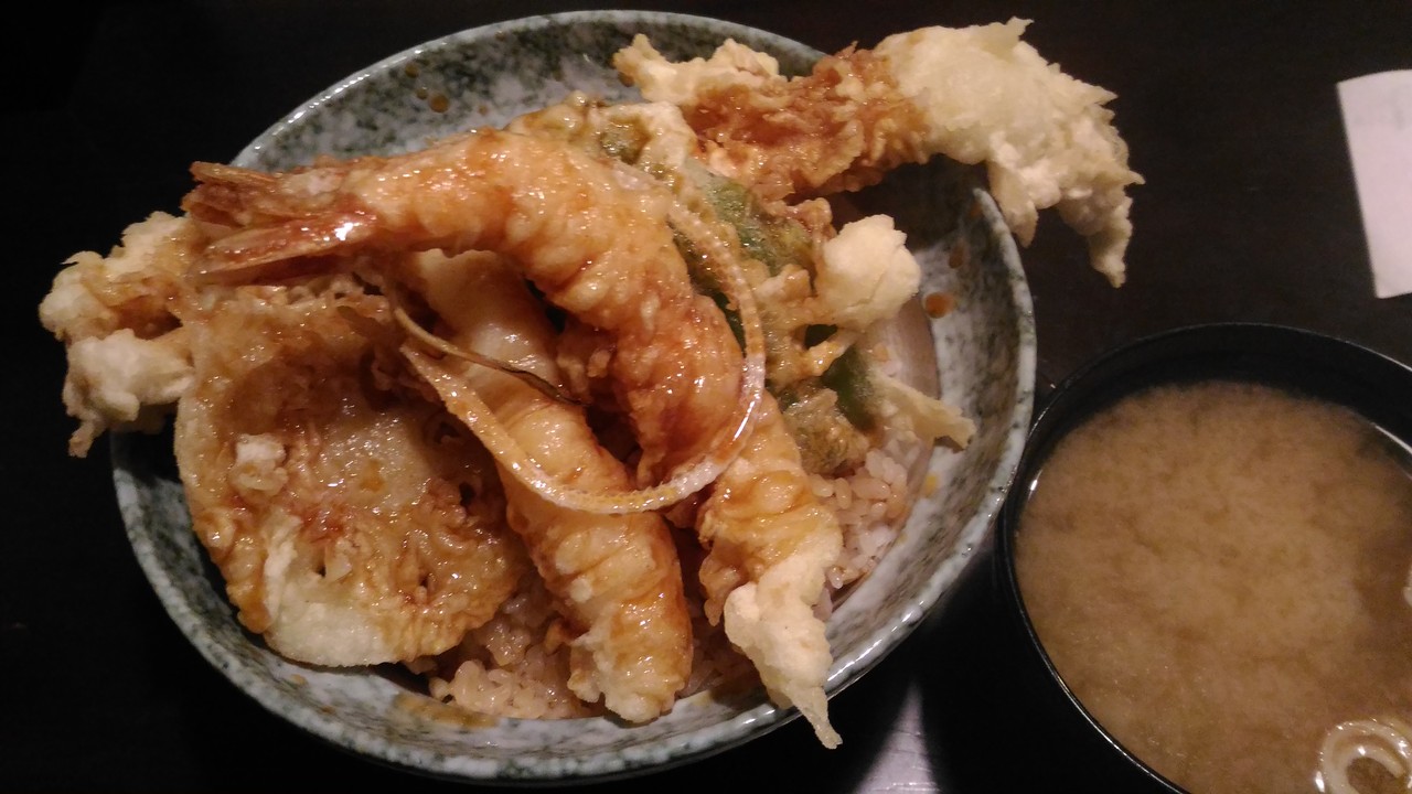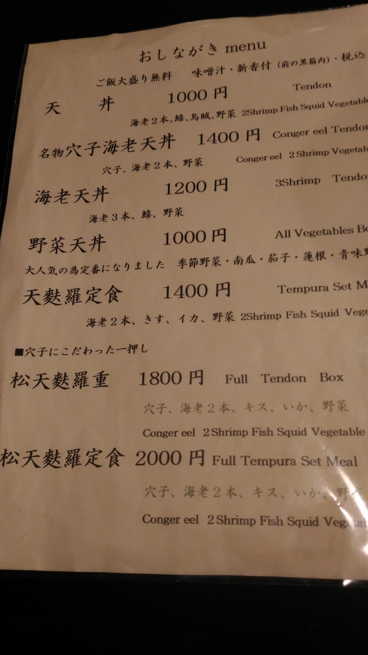 13時半を過ぎていたのに、ほぼ満席。天ぷら定食と海老アナゴ天丼を注文する人が半々くらい。