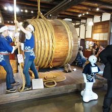 見学スペースでは、大正初期に行われていたという醸造の様子を、等身大人形を用いて展示中。苦労と努力と根性の末に、美味しい日本酒が生まれるのを実感しました。