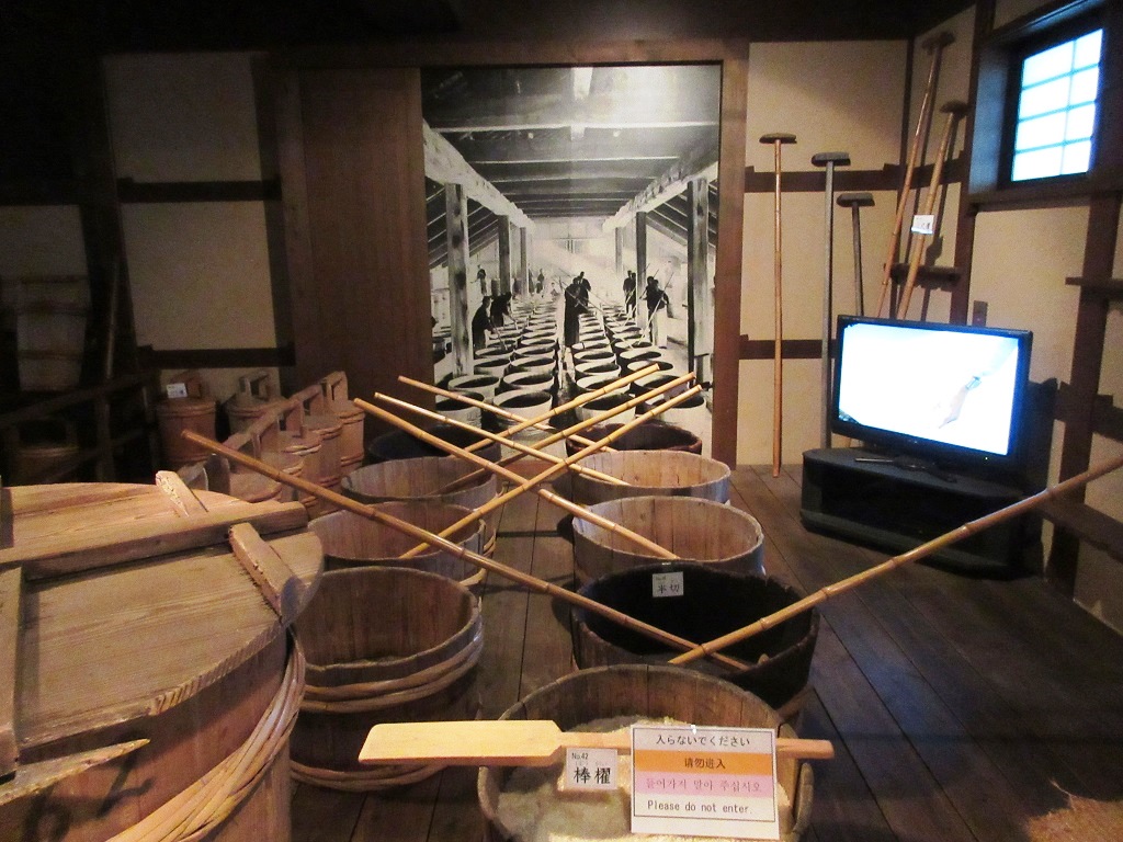 広い酒蔵の中は展示物がとにかく豊富で、杜氏の人たちが酒樽をかき混ぜる様子などが、ジオラマ、写真で紹介されています。