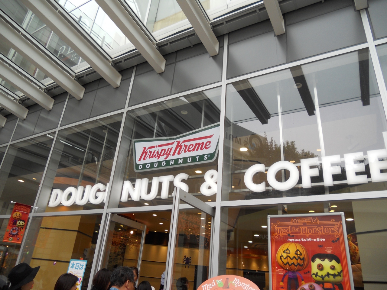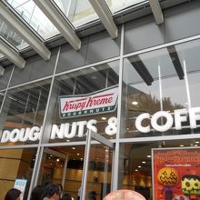 「あべのハルカス」を訪問後、歩道橋を渡って、お向かいの「あべのキューズモール」へ。歩道橋からの2階入口の一番右手前に「クリスピー・クリーム・ドーナツ」が・・。