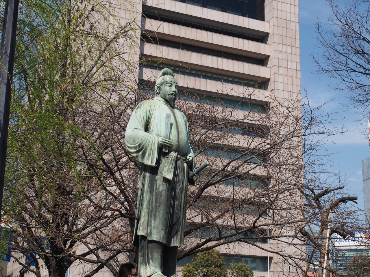 お濠のわきにひっそりとありました。平安時代風の衣装で、いったい誰なのかと思っていたらやはり奈良~平安時代の行政官僚なんだそうです。