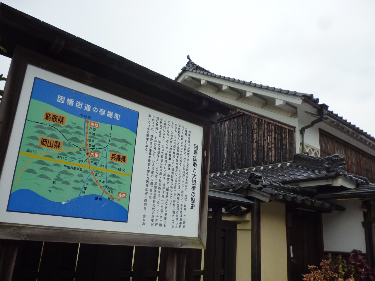 鳥取藩主が参勤交代の時に通った街道で、宿があります。その中で、大原宿と智頭宿を観光してきました。どちらも街道沿いに歴史ある建物が残っていて、風情がありました。手入れよく保存されているので、見ごたえがありました。
