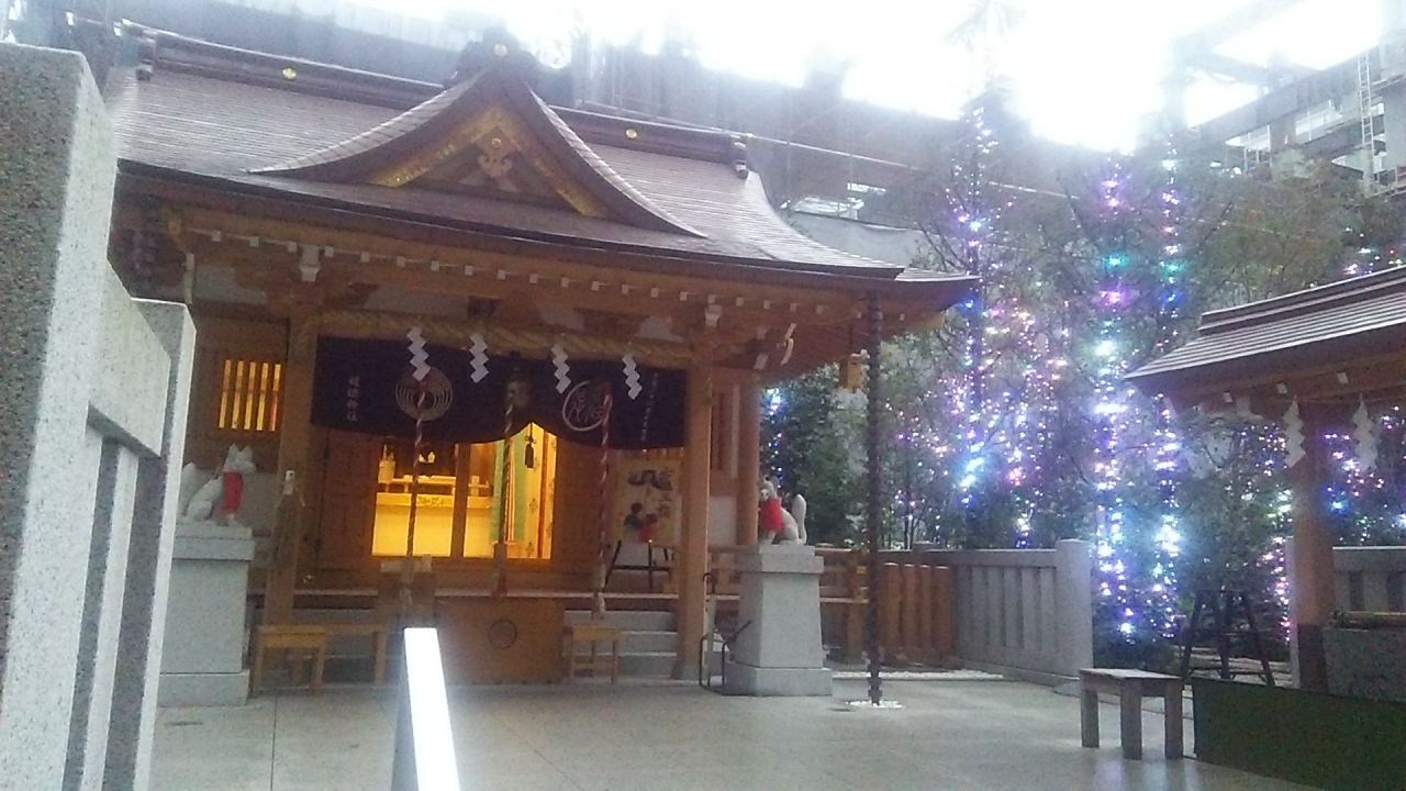 コレド室町などの新しいビルに囲まれてるこじんまりした神社。建物は新しいが家康の時代より前からある由緒ある神社。宝くじの合格祈願で有名。となりでイルミネーションが光っていたが、これも神社の敷地内のようだった。