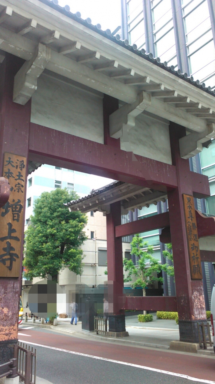 増上寺の大門は、JR浜松町駅から増上寺の境内に向かう途中にあります。大門と言うので、三解脱門のような大きく立派な門を想像していましたが、それほど大きくない門でした。かなり交通量の多い通りにある門なので、常に車が通過していましたが、歴史的には徳川家康が江戸城の大手門を移築したものだそうです(現在は、復元したものです。)。