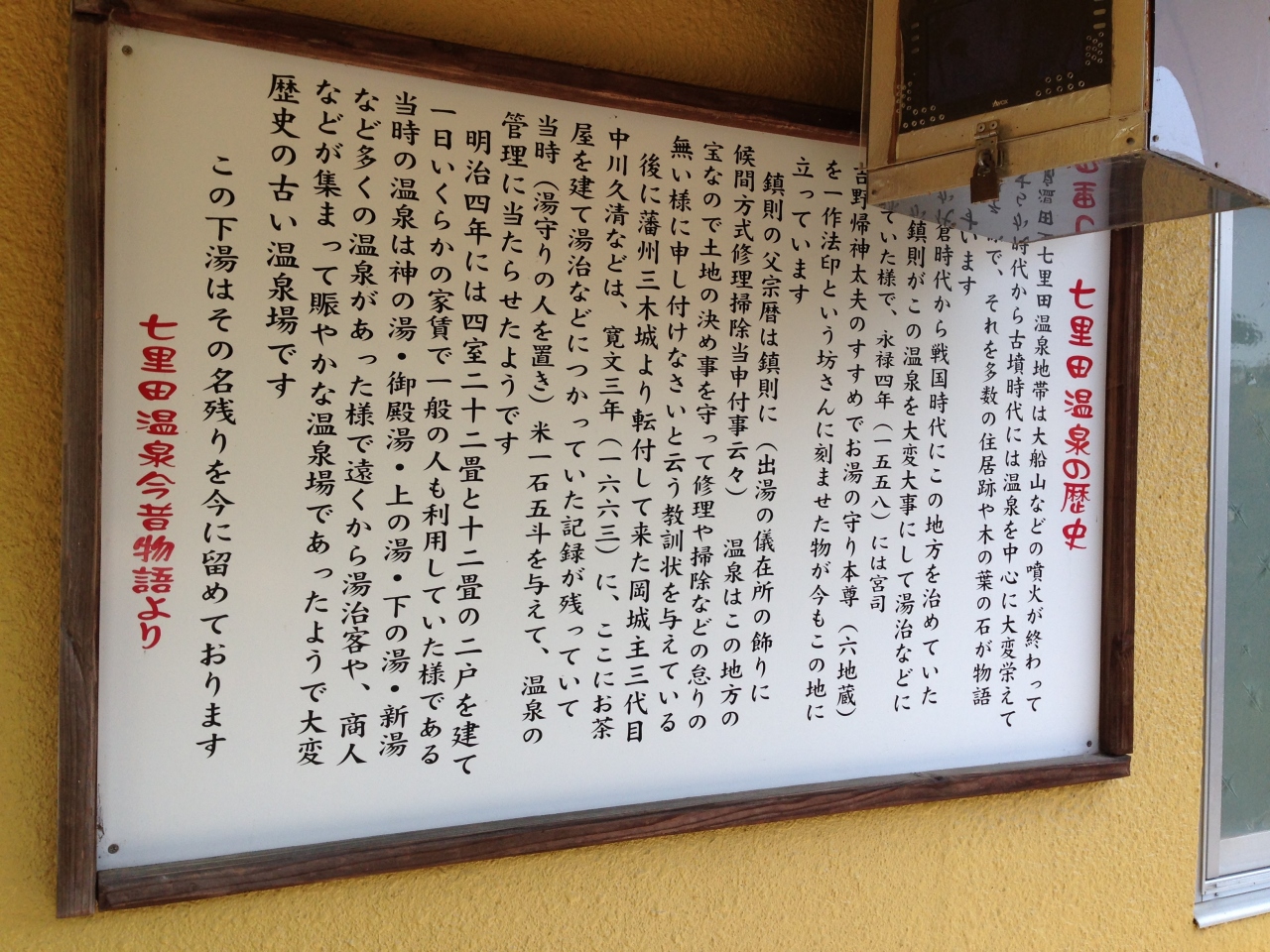 七里田温泉は受付のある建物に「木乃葉の湯」、離れたところに「下湯(ラムネの湯)」があります。