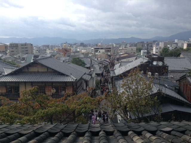 2段階の階段を上ると、見晴らせる場所があり、祇園方面が見えます。
