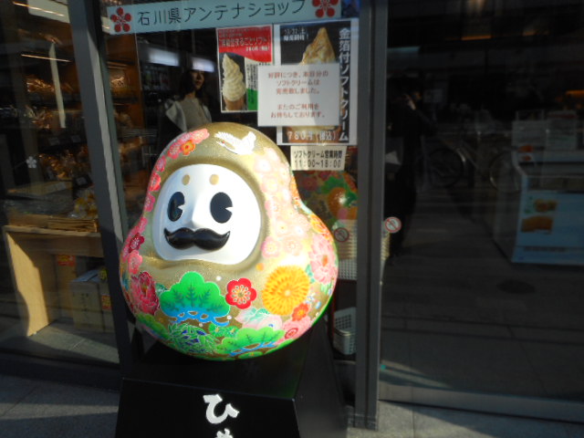 西銀座通りにある”いしかわ百万石物語・江戸本店”はアンテナショツプの中でも、名称が長いです。先日、石川県のゆるきゃらの”ひゃくまんさん”がお腹周りが太く、出入口が通れないとのニュースがあり、入口の可愛いミニ”ひゃくまんさん”を眺めてから店内で柴船を買いました。